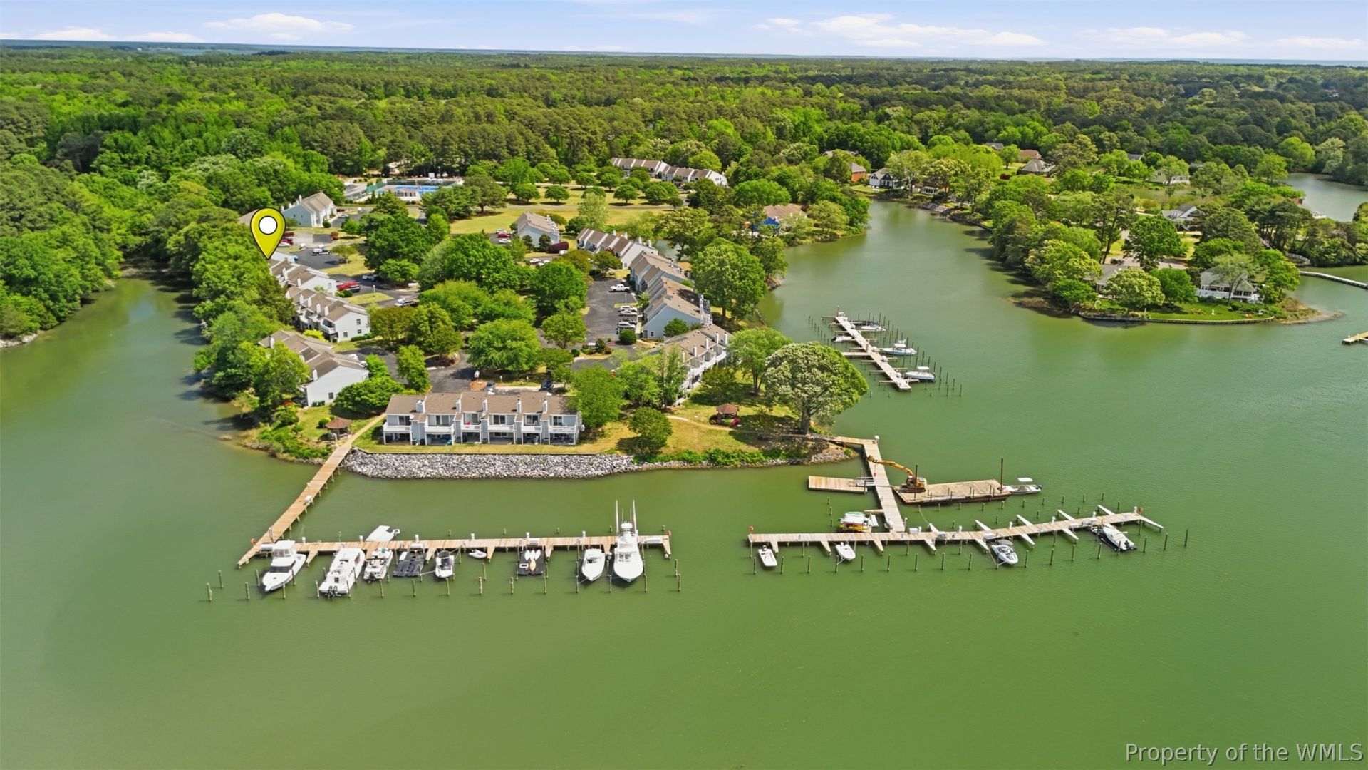Some people spend their whole lives chasing a view like this. You could just move in. This townhome-style waterfront condo in the highly sought-after Dockside community of Hayes, VA (Gloucester County) delivers a truly laid-back lifestyle, a stress-free lock-and-leave second home, or a tranquil waterfront retreat for whatever chapter you're stepping into. Kick back, catch a cool coastal breeze, and sip your morning coffee while ducklings wade by and blue herons glide in to slowly fish the calm tidal waters of Sarah's Creek (a peaceful York River tributary). Tucked away on the creek, this coveted end-unit provides extra privacy, an abundance of natural light, and an open buffer between condo buildings with no attached neighbor on that side. Step inside and head right into the sunny eat-in galley kitchen with a pantry closet and a bright breakfast nook area by the front window. The kitchen opens to the living room, also accessible down the hallway (you'll pass a water heater closet under the stairs and a convenient powder room along the way). This relaxing space showcases a cozy wood-burning stone fireplace, a stone accent wall, and sliding glass doors that open to your covered waterside patio with attached storage and a wooden privacy wall. Instead of a noisy marina, your backyard looks directly over a beautiful, calming creek view. The second floor presents a practical dual-ensuite layout with a laundry closet conveniently located at the landing. The primary suite is a peaceful waterfront escape featuring a sink vanity area, walk-in closet, full bath, and private balcony to take in the serene, elevated water views through the trees. The spacious guest bedroom faces the front of the property, soaking in natural light from plenty of windows, and includes its own private full bathroom, giving guests (or a home office) their own space. The condo association handles the heavy lifting, covering water, community septic, trash removal, yard work, grounds keeping, and exterior building maintenance. Venture out to enjoy resort-style amenities including a sparkling pool, tennis and pickleball courts, a clubhouse, gazebo, community garden, and pristine community docks. Please note: access to communal storage, separate storage sheds, RV/boat storage, and deep-water boat slips MAY be available upon request or as available through the association for an additional fee (not included with sale). An easy commute to nearby military bases and the Chesapeake Bay!